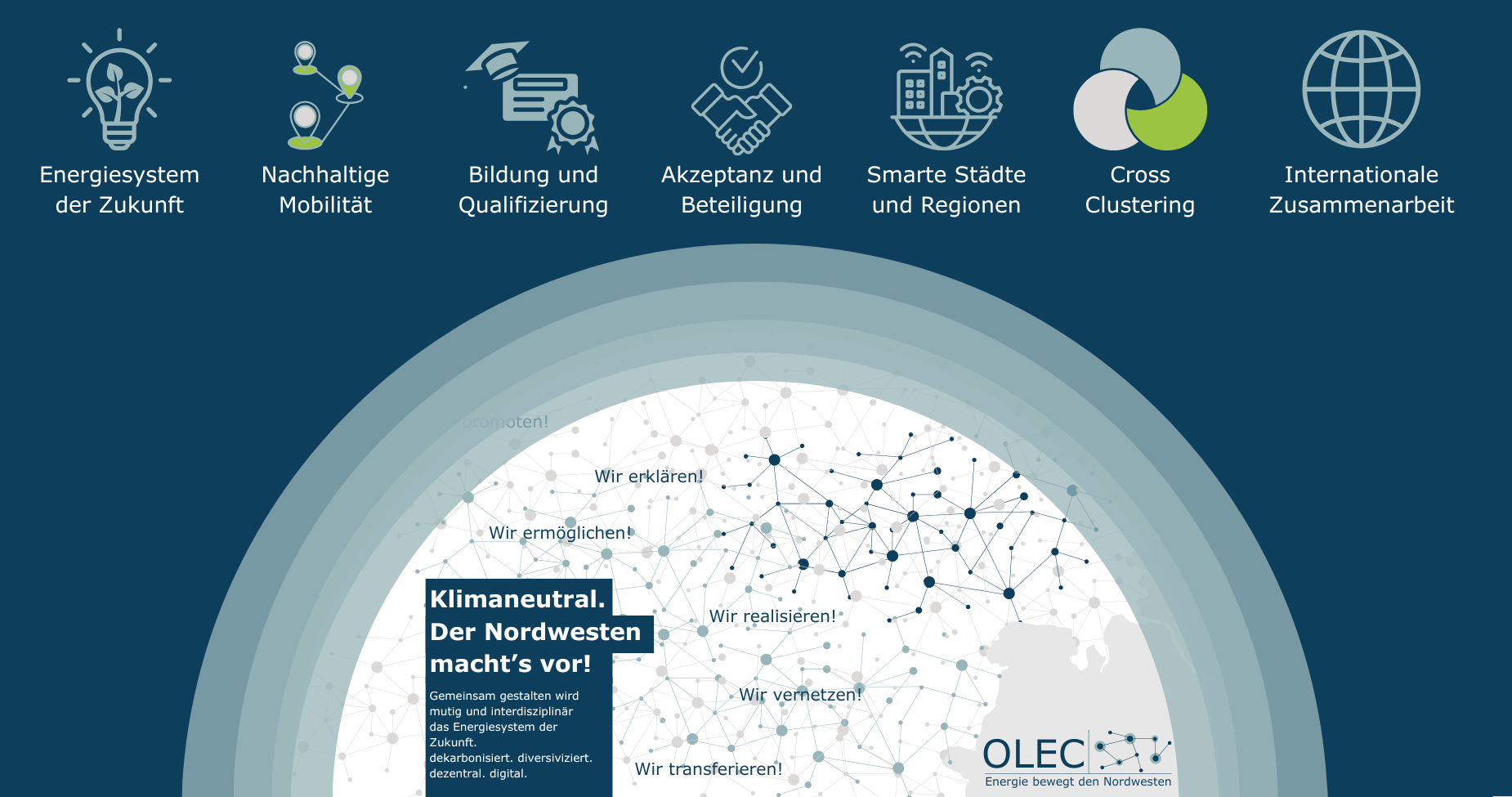 Als OLEC im Jahr 2005 entstanden ist, bildete die Vernetzung der lokalen Akteur*innen zur Förderung der Energiewende im Nordwesten den Fokus. Zunächst entwickelte sich OLEC als Netzwerk von Erzeuger*innen erneuerbarer Energien, hatte aber von Beginn an stets eine interdisziplinäre Ausrichtung. Denn bereits zu Beginn war sonnenklar: Ohne ein Miteinander aller Akteur*innen – von Erzeugung, Transport, Forschung, Finanzierung, Wartung und Beteiligung entlang der gesamten Erneuerbaren Wertschöpfungskette – kann die Energiewende nicht umgesetzt und ein Energiesystem der Zukunft entwickelt werden.