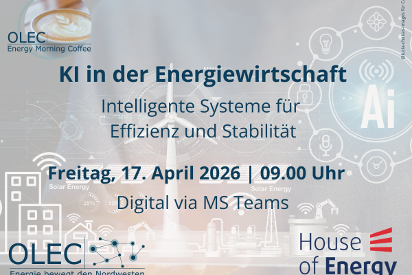 Gemeinsam mit dem House of Energy zeigen wir in unserem Onlineformat „OLEC Energy Morning Coffee“, wie Künstliche Intelligenz hilft, diese Komplexität beherrschbar zu machen. Anhand konkreter Praxisbeispiele aus Anlagenbetrieb, Netzführung und energiewirtschaftlichen Prozessen – von intelligenten Stromnetzen über vorausschauende Wartung bis hin zu automatisierten Betriebsentscheidungen – wird deutlich, wie KI Effizienz steigert, Kosten senkt, Prozesse beschleunigt und gleichzeitig Resilienz sowie Versorgungssicherheit erhöht.